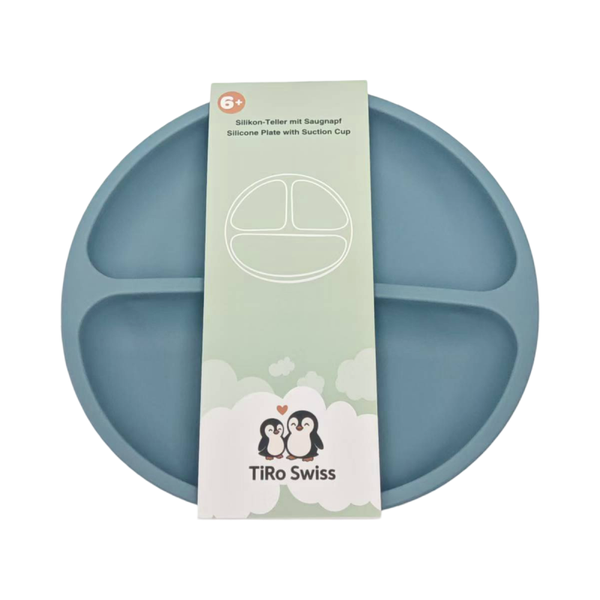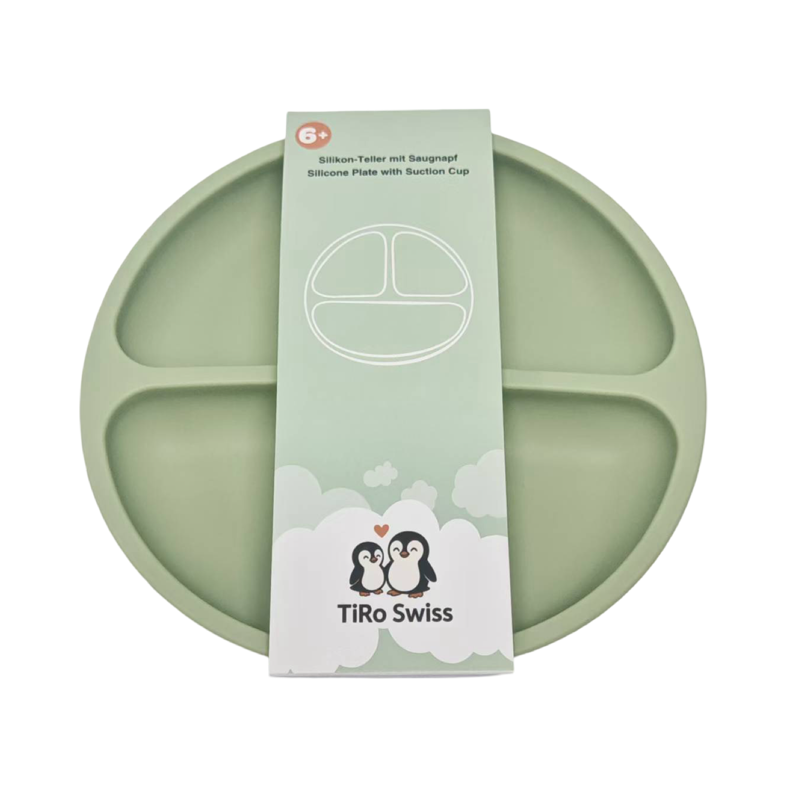 Der TiRo Swiss Silikon-Teller mit Saugnapf unterstützt dein Kind beim selbstständigen Essen. Die 3-fach-Unterteilung sorgt für übersichtliche Mahlzeiten, während der starke Saugnapf den Teller sicher auf glatten Oberflächen fixiert.